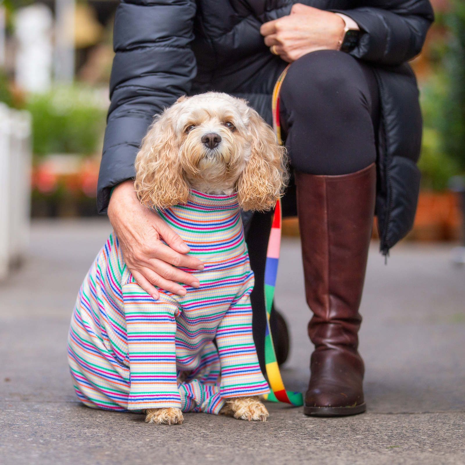 Snuggly and stretchy pyjamas that are easy to put on, and help to reduce fur and dirt from getting into our beds. Also great for the colder months to give Millie an added layer of warmth.